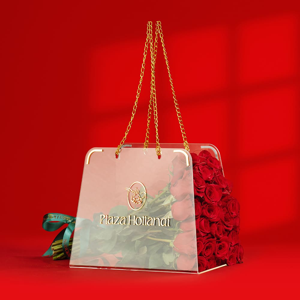 This stunning floral gift features 25 premium red roses, carefully arranged and presented in a modern, stylish bag for a clean and classy look.